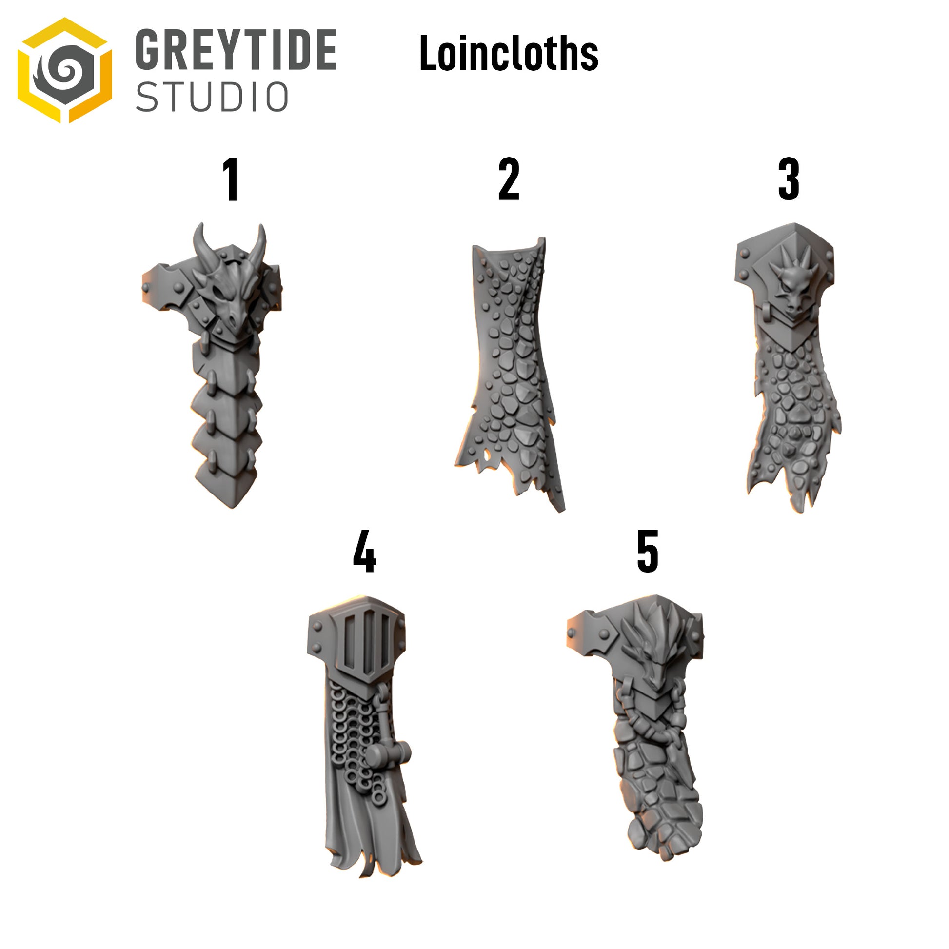 Elevate your Space Marine forces with these exquisitely sculpted resin loincloths from Grey Tide Studio's Anvil Wardens collection. Each piece embodies a distinct Gothic and knightly artificer theme, featuring ornate details such as horned visages, intricate scale patterns, classic chainmail, and symbolic iconography like hammers and laurels. Designed as premium conversion bits, these loincloths are perfect for adding a unique, venerable crusader aesthetic to your heavily armored infantry, character models, or even combat walkers, making them ideal for chapters like the Black Templars, Dark Angels, or Grey Knights.
