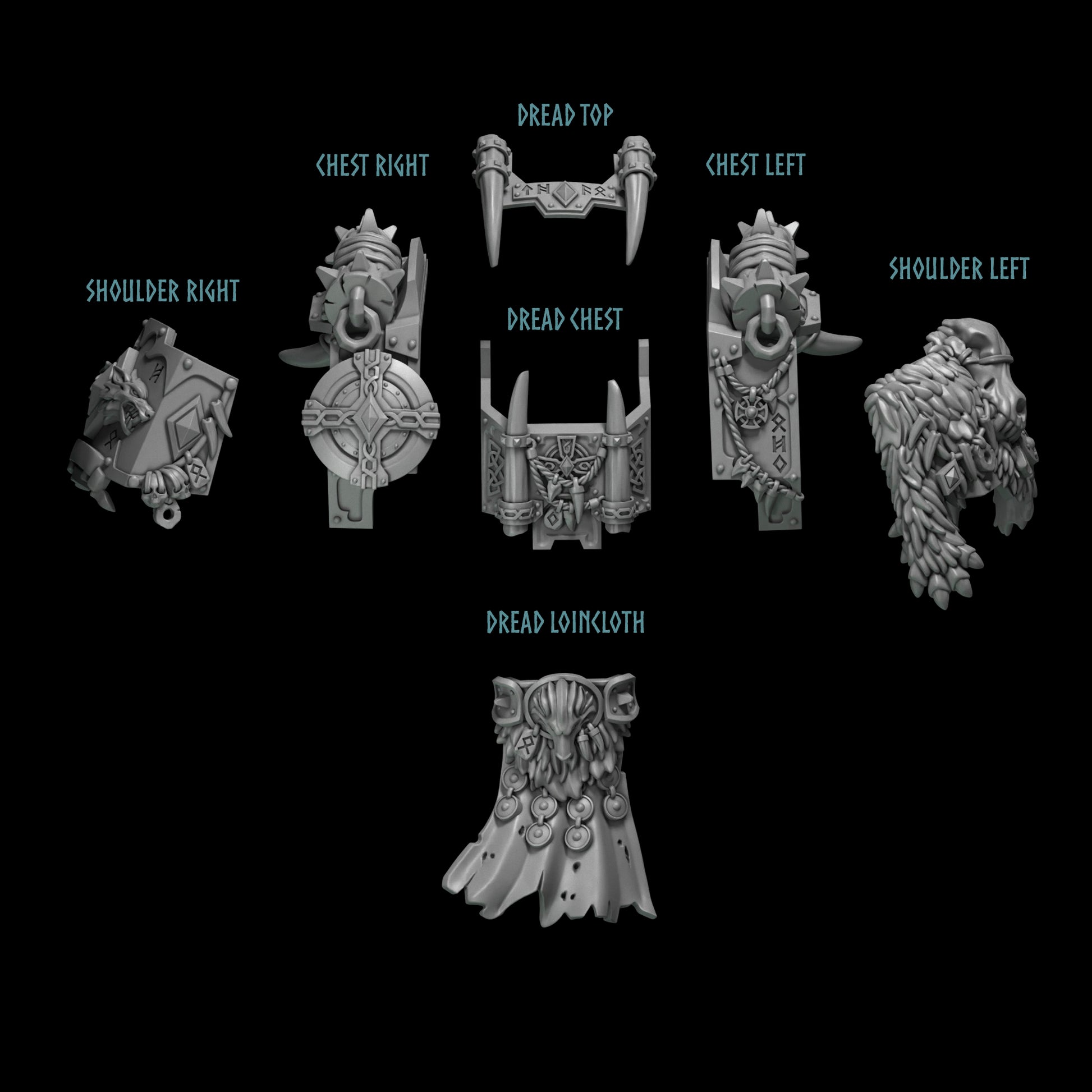 Immerse your Space Marine Dreadnoughts in the feral aesthetic of the Primal Hounds with these exquisite resin conversion bits. Each piece is meticulously sculpted with a strong Norse/Viking influence, perfect for customizing your 28-32mm wargaming models. Choose from distinct components like the imposing Dread Top, intricately detailed Chest Plates (Left and Right), fierce Shoulder Guards (Left and Right), a central Dread Chest plate, and a flowing Dread Loincloth, all designed to transform your 'Ancients' into true warriors of the Space Wolves chapter.